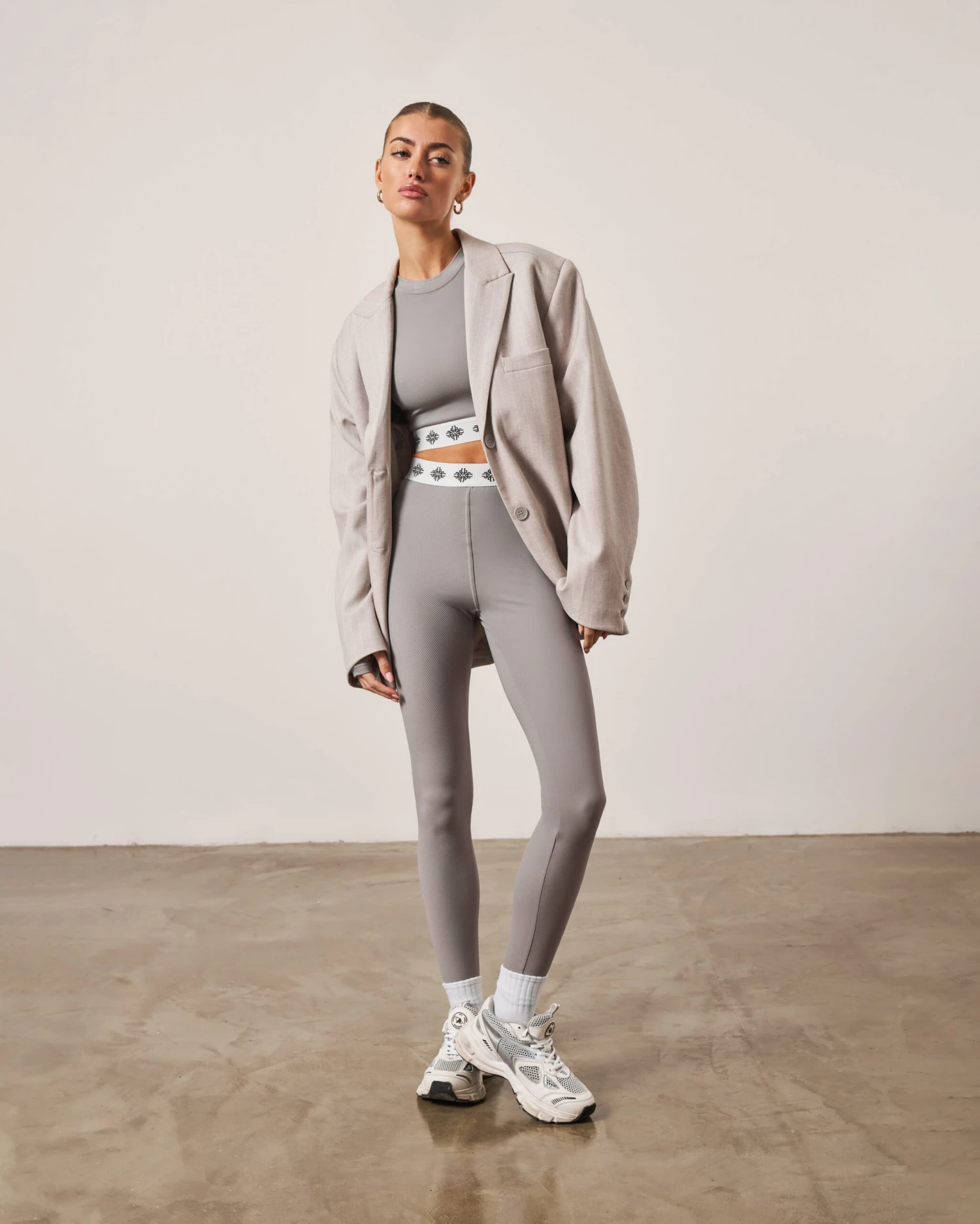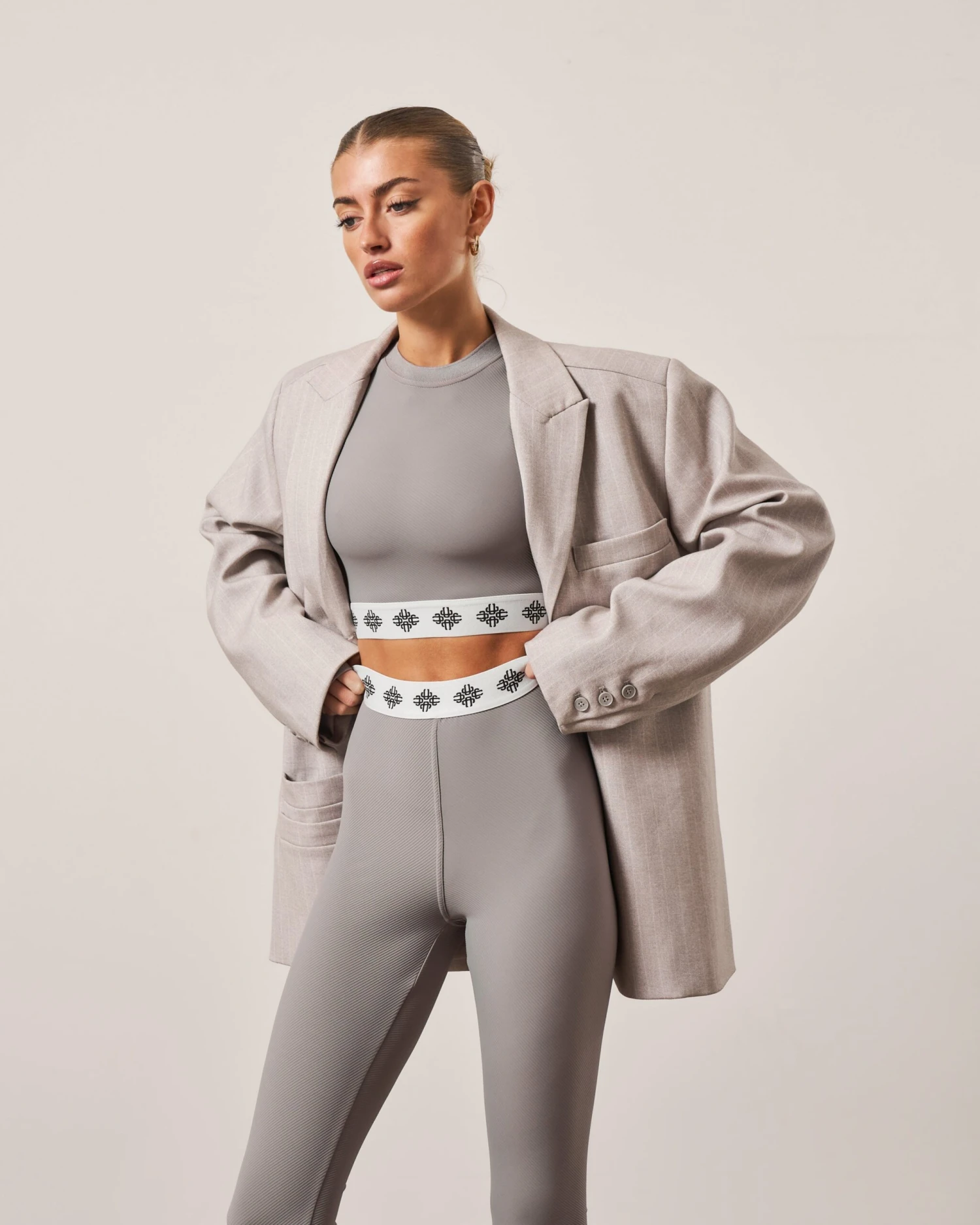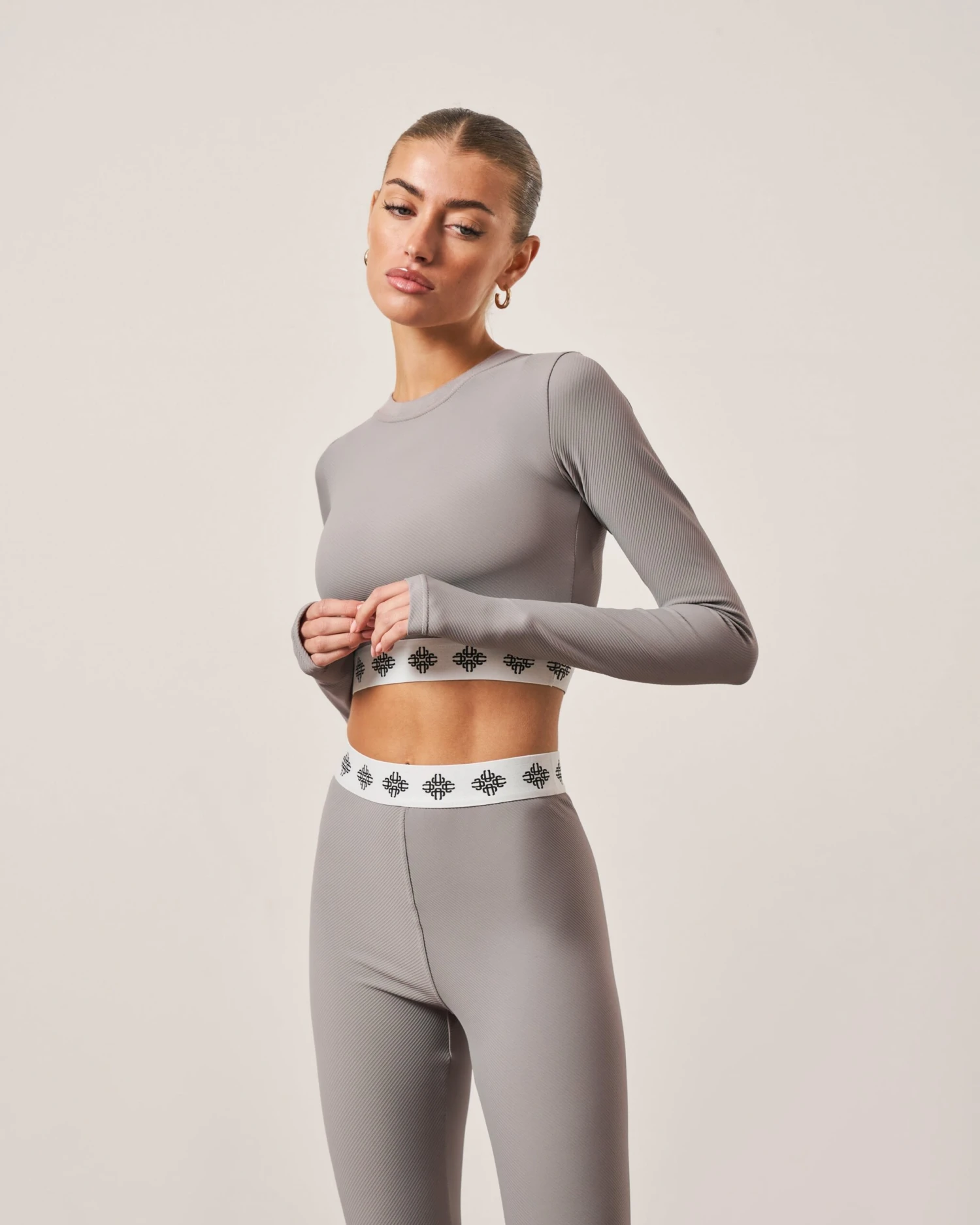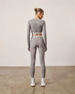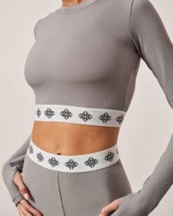 BRANDED WAISTBAND FITTED RIBBED TOP – GREY