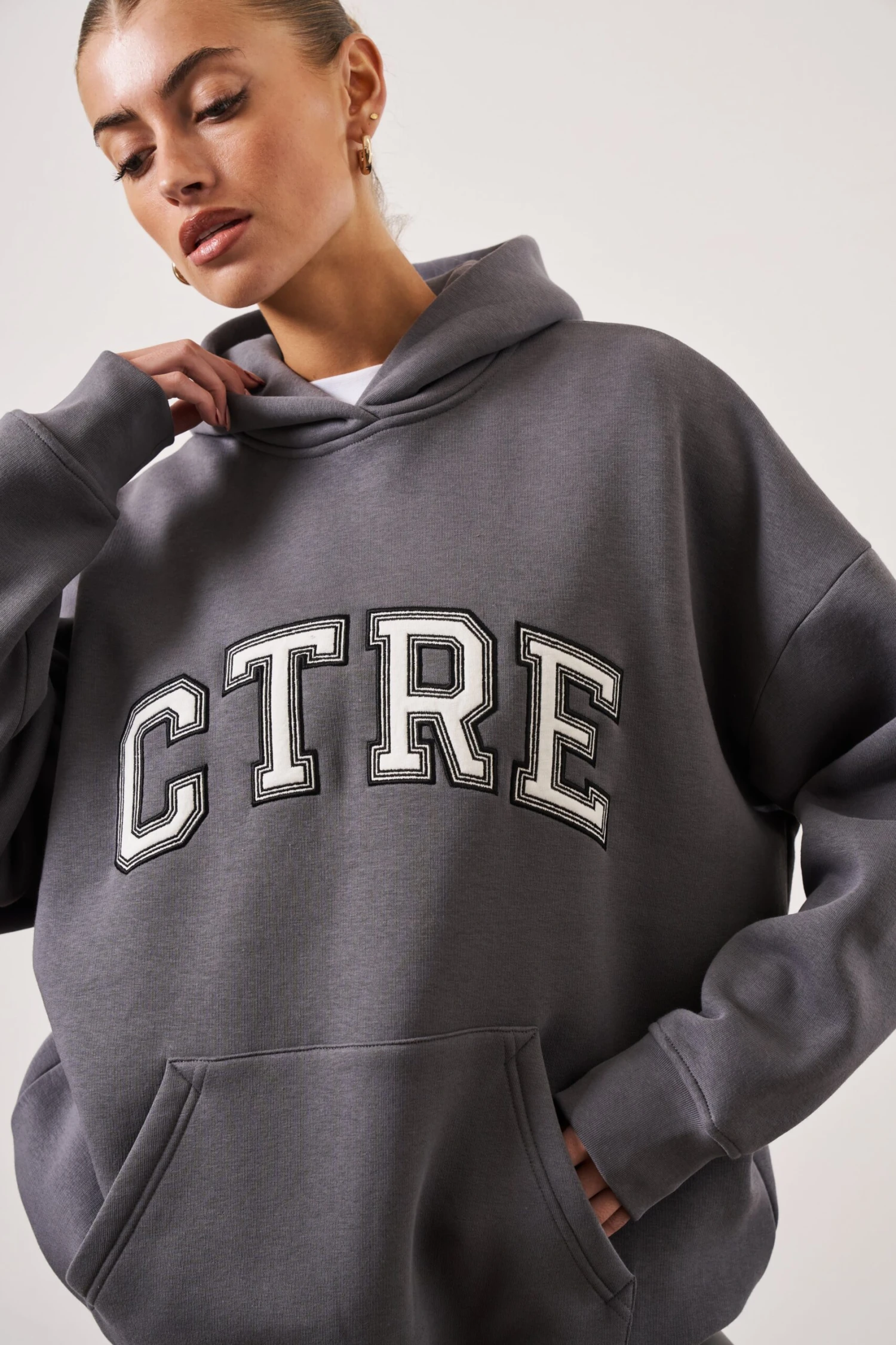 – Appliqué varsity logo to front