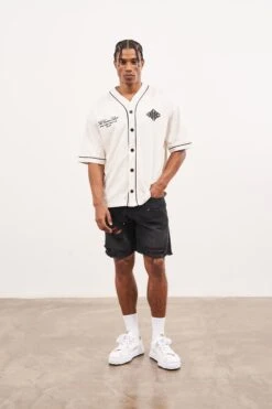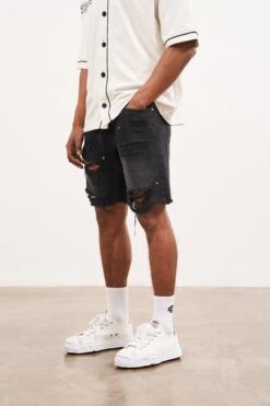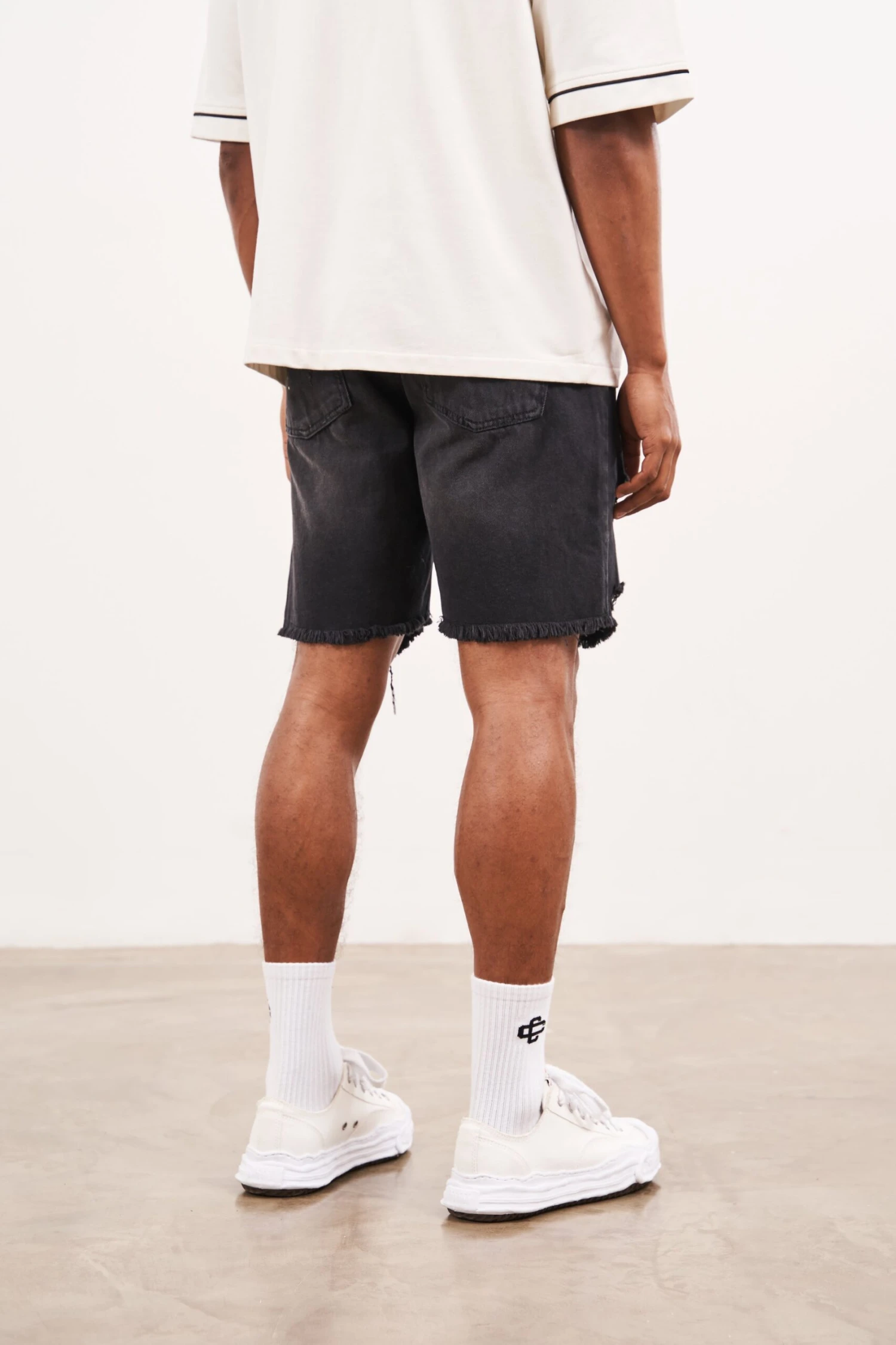 – Relaxed fit denim short with raw hem