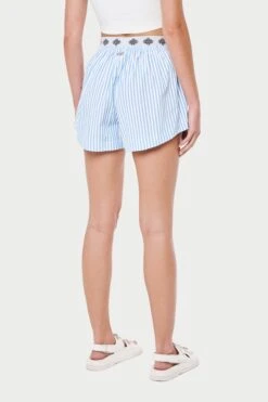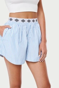 – Double waistband detail with embroidered emblem branding