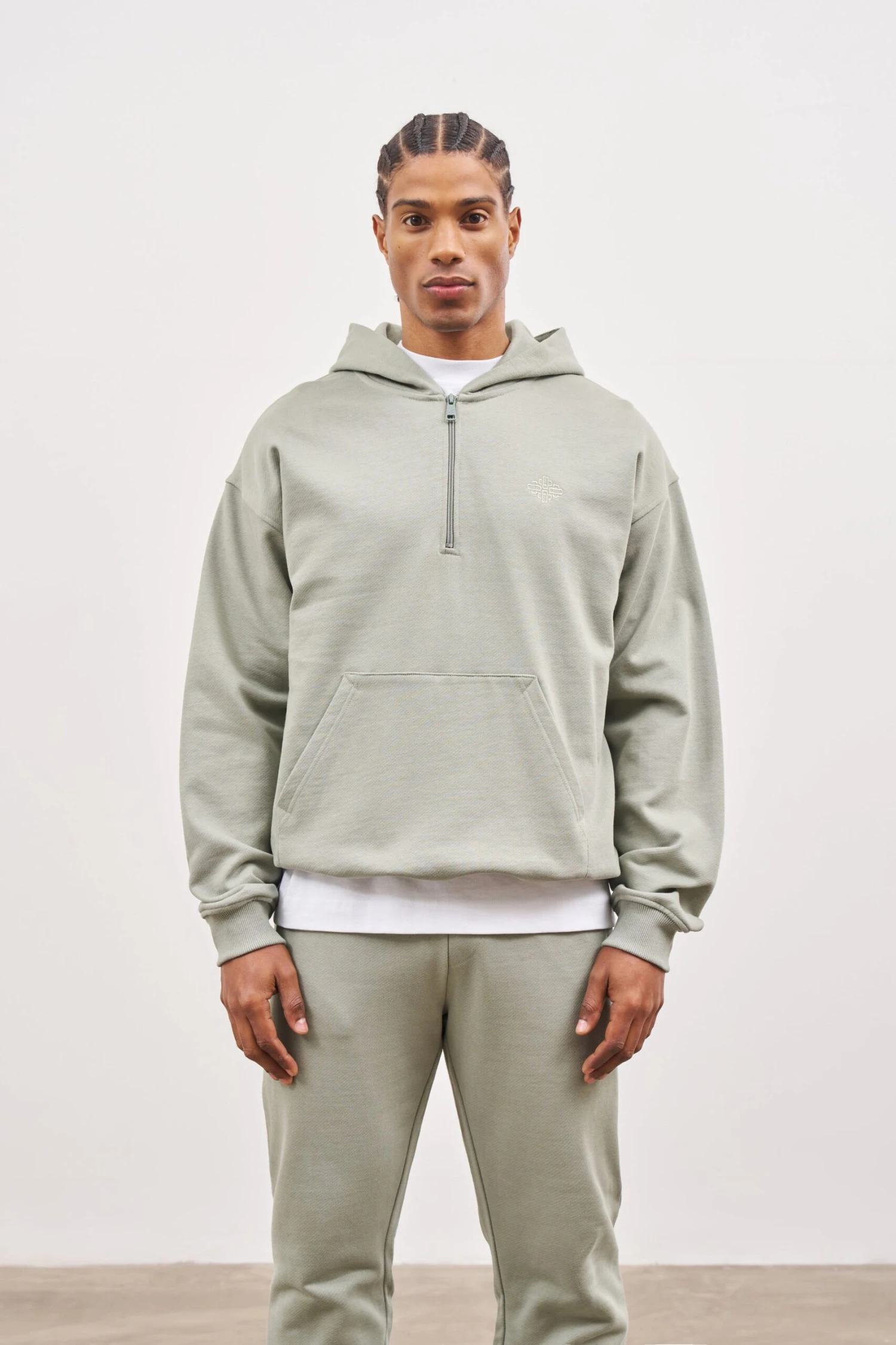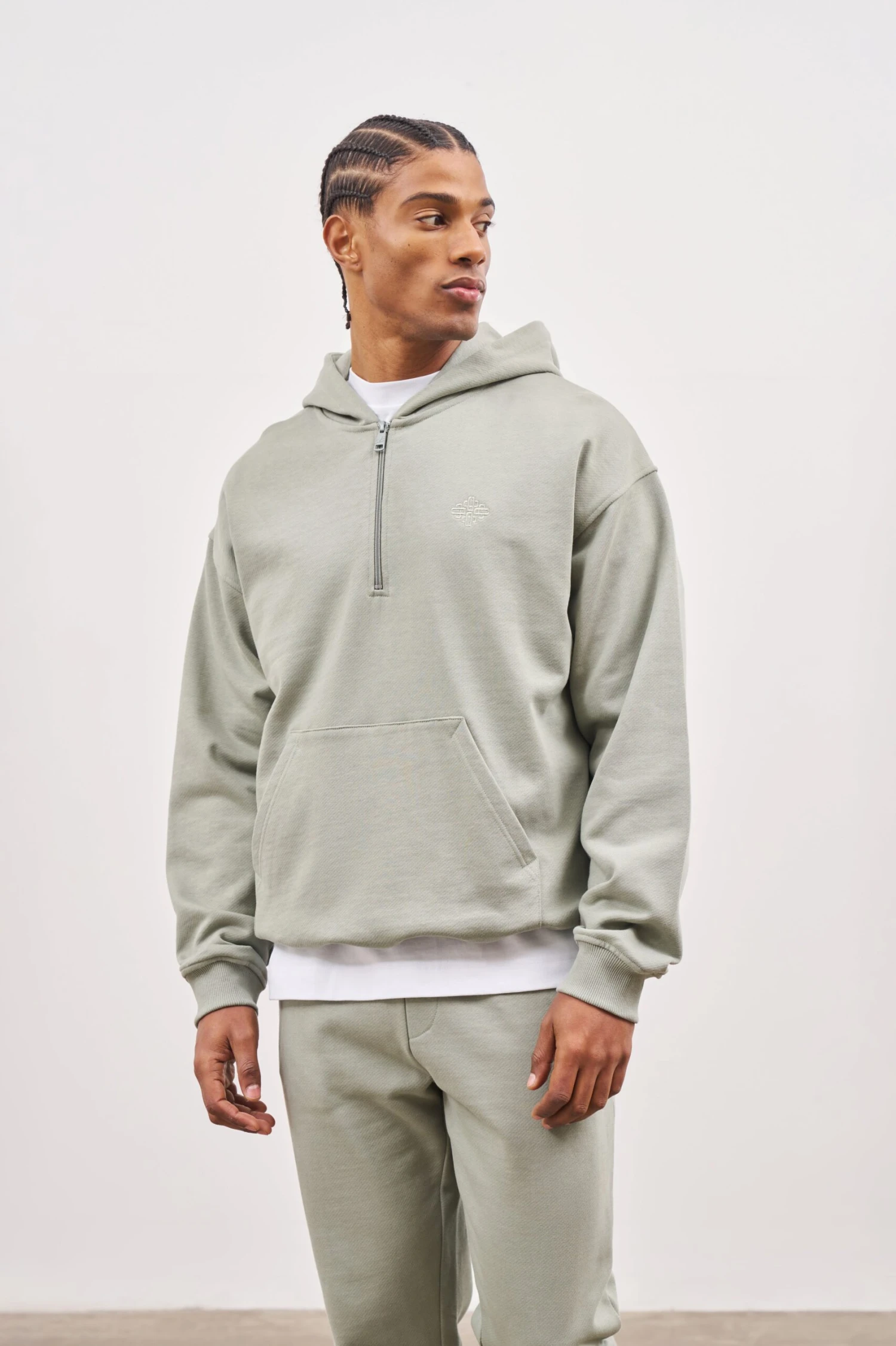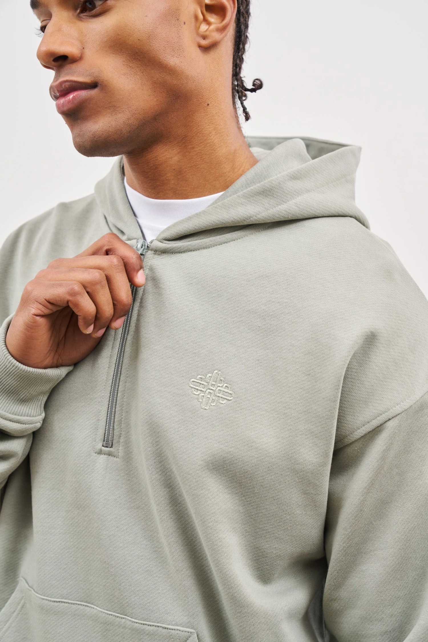 – Hood lined in self fabric with quarter zip detail