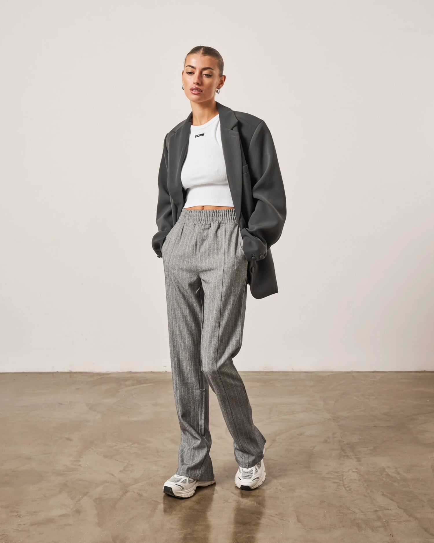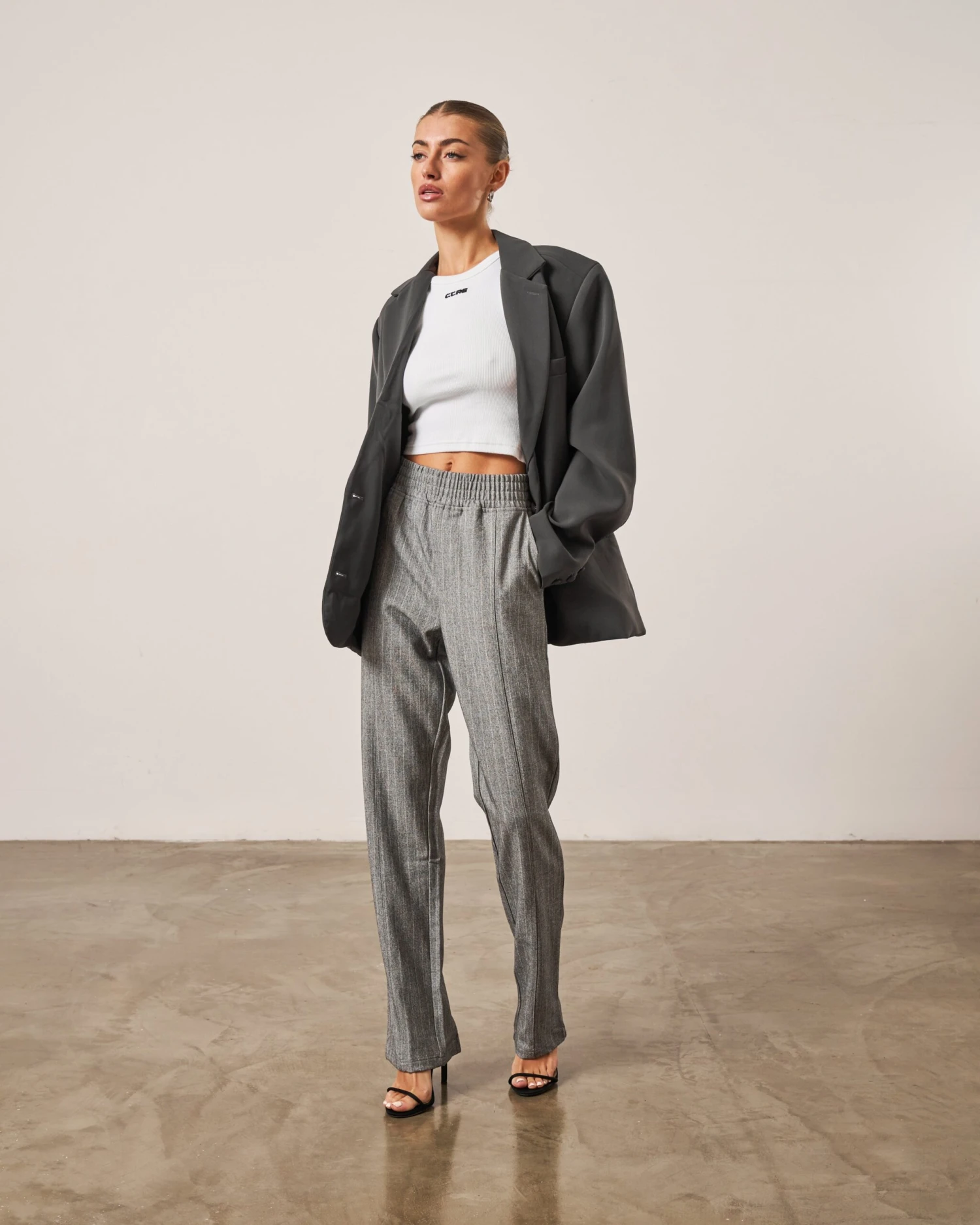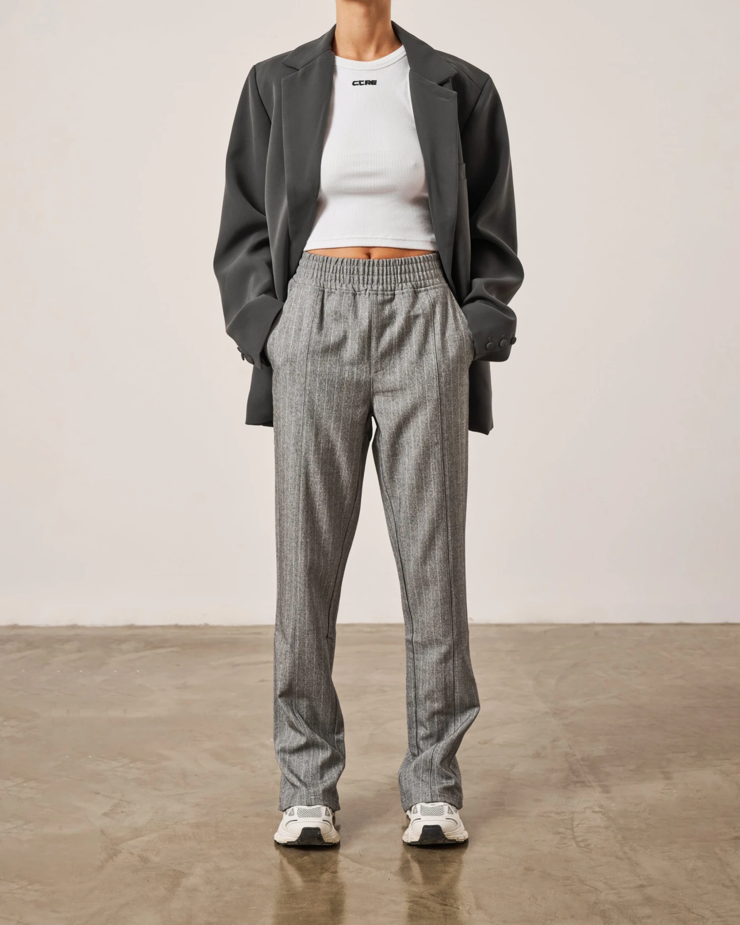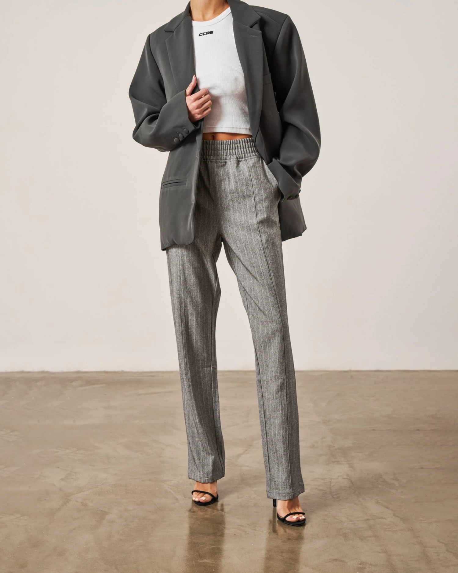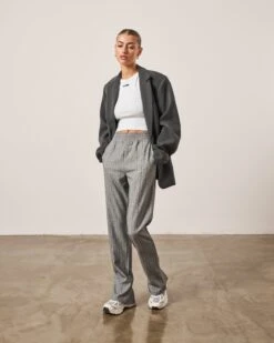 – Grey pinstripe fabric