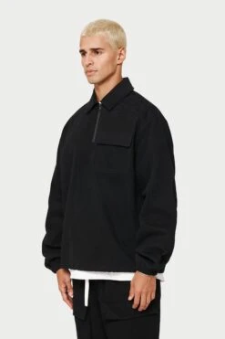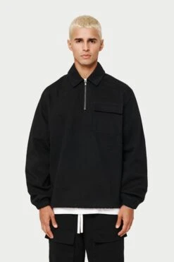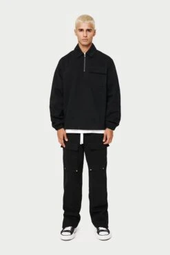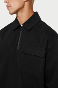 – Quarter zip fastening to front with tonal metalwear