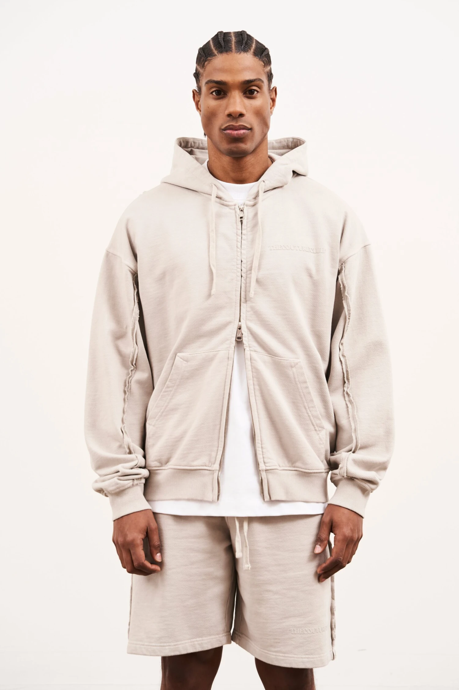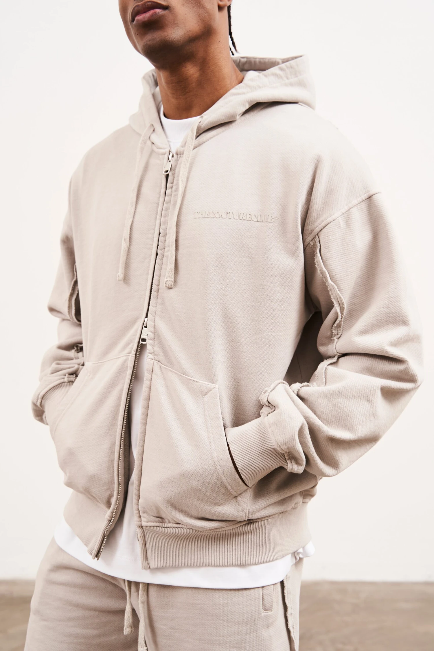 – Open raw seam detailing