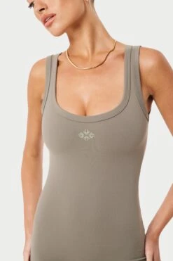 – Front rounded neckline with thick shoulder straps