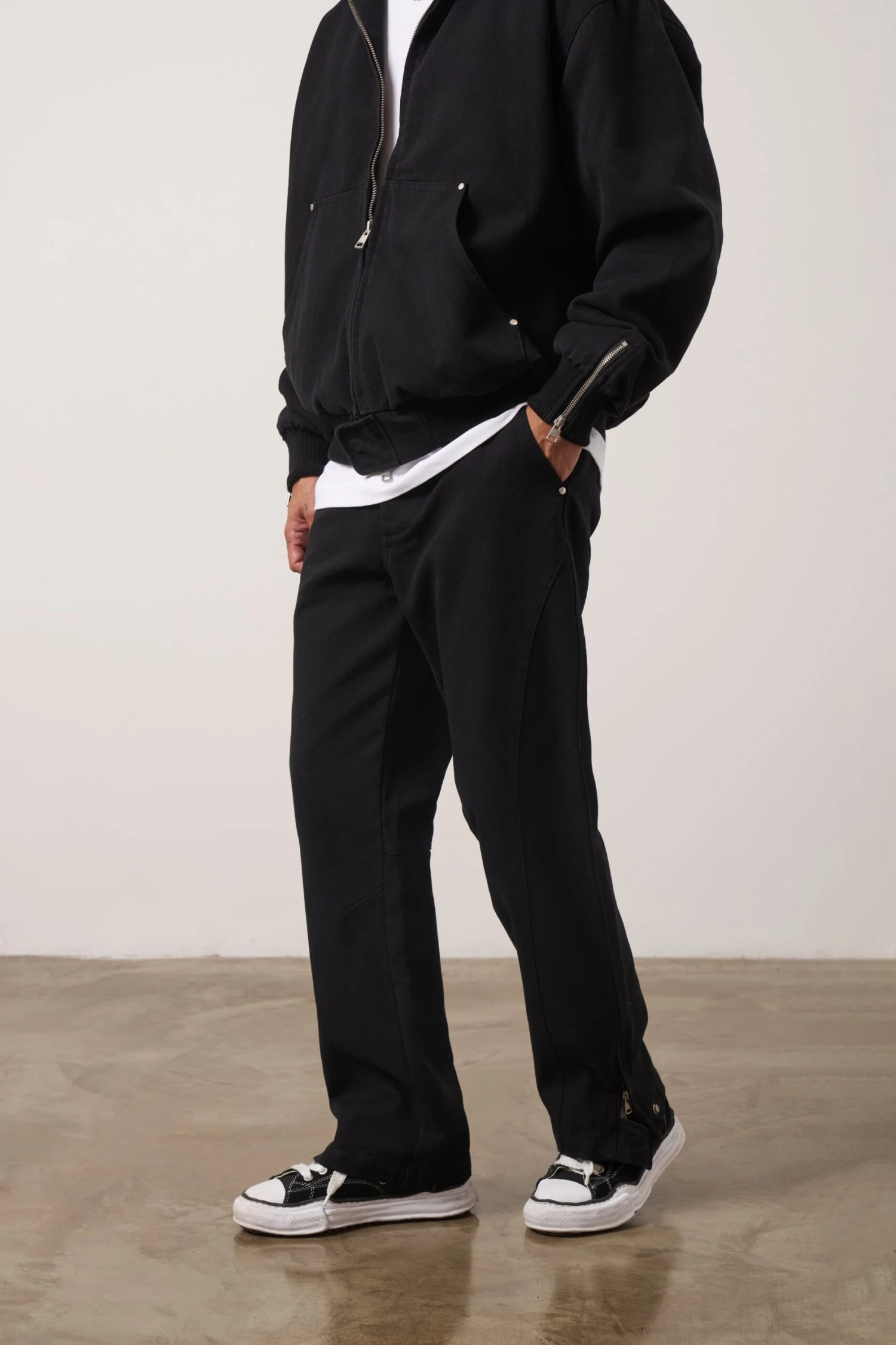 – Zip fastening to hem with tab